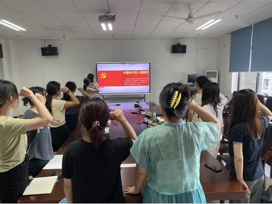 党课结束后,何老师带领支部党员重温入党誓词暨新党员入党宣誓。铮铮誓言,跨越百年,拳拳初心,薪火相传。鲜红的党旗和庄严的誓词,强烈震撼着在场的每一位党员。铿锵有力的宣誓,表达了大家对党的无限忠诚、热爱和听党话、跟党走的坚定决心。大家纷纷表示将牢记入党誓词,以中国共产党丰富精神谱系和光辉历程为指引,坚定理想信念,奋进新征程。