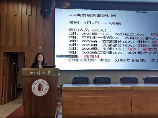 4月1日,历史文化学院152期党员发展对象培训班开班仪式在江安校区负一楼报告厅举行。会议由学院专职组织员石琼老师主持,学院90余名党员发展对象参加此次开班仪式。
