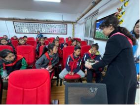 图2:服务队谭博文在向红原县玛萨寺的僧侣讲解流动展览中的革命文物;图3:服务队王颖在松潘县进文小学的博物馆专题课堂上向学生展示四川博物院馆藏的革命文物——红军使用过的皮带。