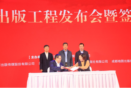 李勇先教授签署了《蜀道文库》合作协议,成都地图出版社社长鄢来勇与李勇先教授签署了《蜀道栈道图集》出版协议。