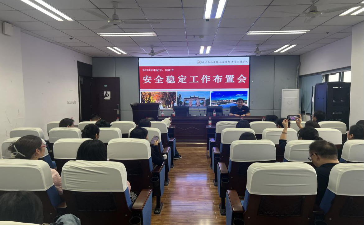 9月26日上午10:00,学院召开中秋国庆安全稳定工作布置会,专题布置国庆节、中秋节期间学院办公室、实验室等安全稳定工作。学院王煜副院长、张霖副院长、考古实验中心负责人、旅游实验室负责人,以及所有行政老师参加了本次会议,会议由办公室主任陈艺主持。