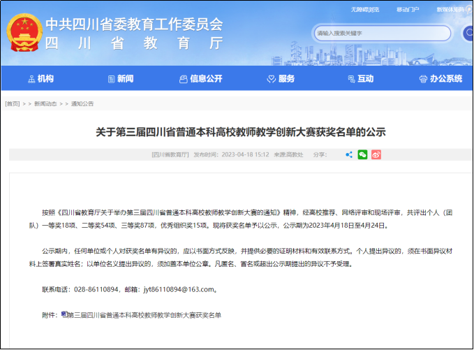 教师获第三届四川省普通本科高校教师教学创新大赛