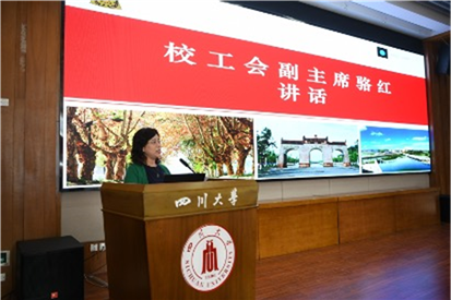 大会在庄严的国歌声中拉开序幕。四川大学工会副主席骆红代表校工会发表讲话。她对学院积极落实主体责任,深化两个伟大深度融合,在党的建设、事业发展及工会工作取得成绩表示肯定,并希望学院新一届工会继续围绕学院发展大局,主动作为,全心全意服务教职工,办实事、解难事,继续发扬学院工作用家的温情凝聚人心,家的关怀汇聚合力的优良传统,团结引领全院教职工发奋有为,为学院高质量发展贡献力量。