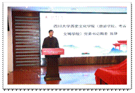(旅游学院 考古文博学院)党委书记陶宏、著名历史地理学家、北京大学历史学系李孝聪教授、中国民营文化产业商会钟家全先生作了热情洋溢的致辞,他们充分肯定了四川大学利用自身学科优势,为成渝双城经济圈发展战略所做出的重要贡献。开幕式上,还举行了四川大学图书馆馆藏清乾隆年间彩绘孤本《四川全图》出版首发式,该图集由成都地图出版社正式出版。