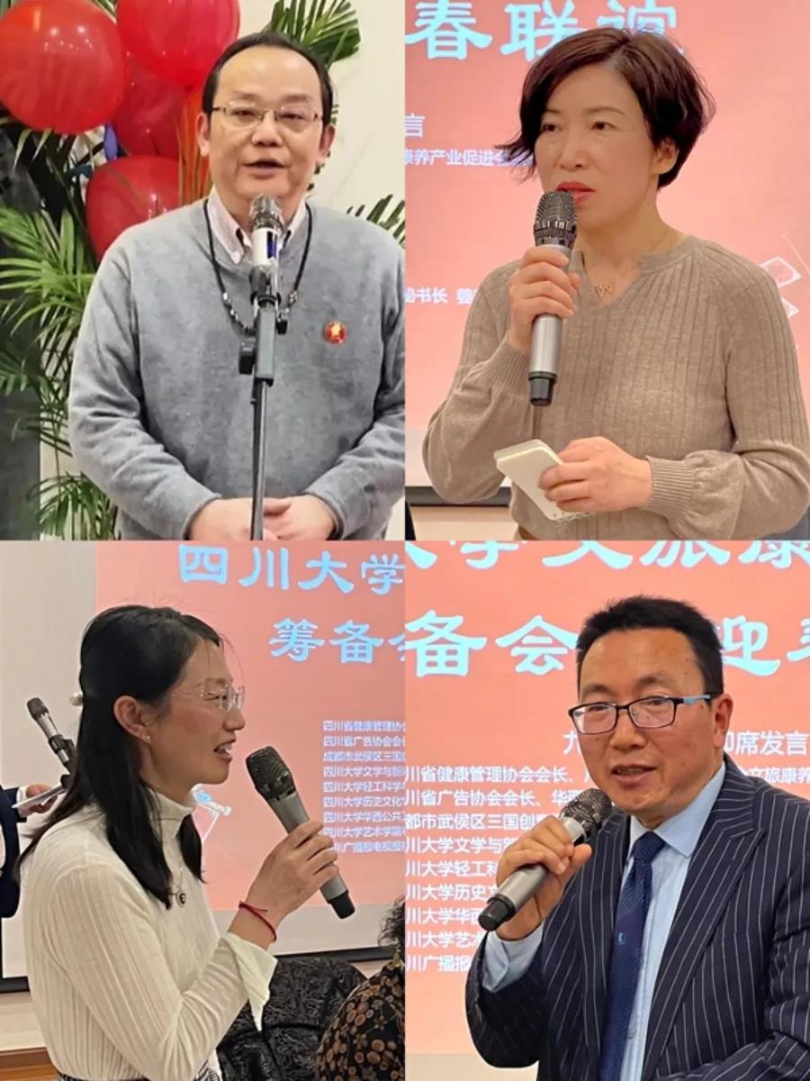 (旅游学院)院长助理王俊鸿,四川大学华西公共卫生学院党政办院办主任、院校友会秘书长姜春萍,四川广播报电视报值班编委张业,成都市武侯区三国创意园管委会副主任赖可坚等表示将全力支持文旅康养校友会的筹备工作。
