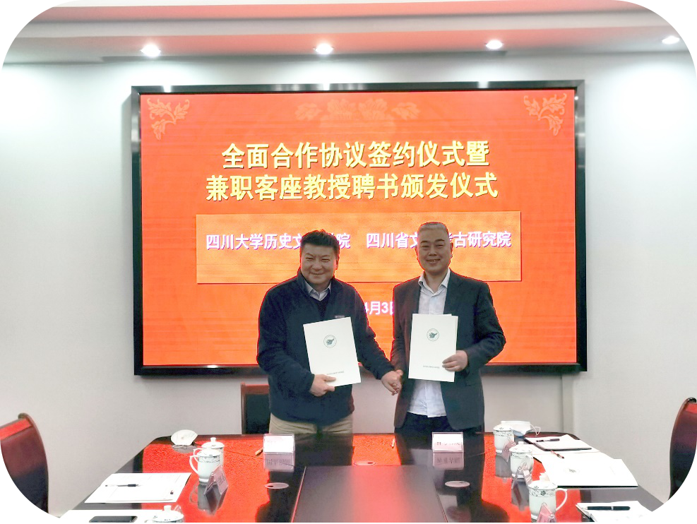 双方经过充分协商,决定在考古、文物、文化遗产研究等领域展开全面合作研究。2020年4月3日下午,在四川省文物考古研究院举行了合作协议签字仪式,同时还进行了四川大学考古学专业客座教授及校外合作导师的聘任仪式。