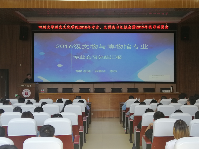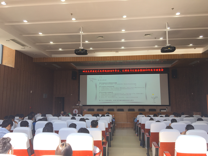 2018年考古、文博专业实习汇报会暨2019年实习动员会于9月25日下午在江安校区文科楼二区学术报告厅举行。历史文化学院院长霍巍教授、副院长鲍成志、副书记姜华、考古系十余位教师及2016级、2017级考古、文博专业全体本科生和部分研究生共计100多人参会。会议由考古系系主任白彬教授主持。