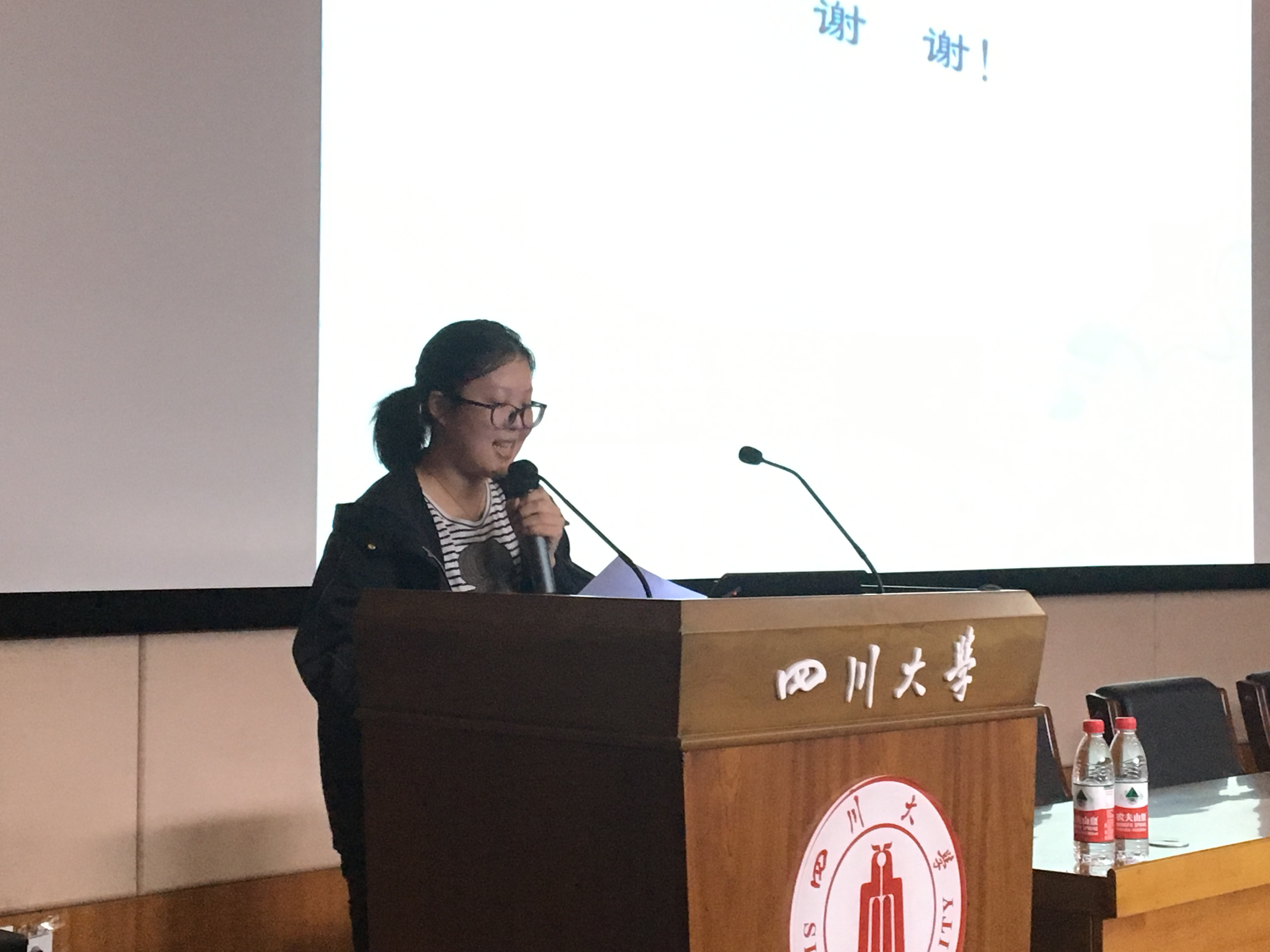 李林老师代表成都博物馆文博专业实习队就前期准备工作,实习内容与管理,考核制度,特色亮点及建议进行实习总结。实习学生代表唐梅、杨梓舒同学发言,着重分享了各部门的实习工作心得和体会。