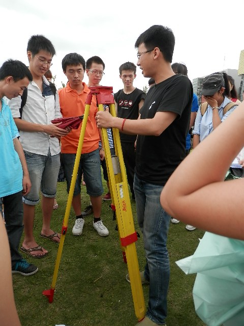 7月2日与7月4日下午行课期间,考古系2011级学生又分成两批,先后进行了全站仪的操作。王硕老师先具体讲授将近40分钟,随后同学们两人成组进行操作,包括建站、对中、整平、测量等等。7月4日由于下雨原因,操作在实验室进行,但场地限制丝毫没有影响同学们的学习热情。