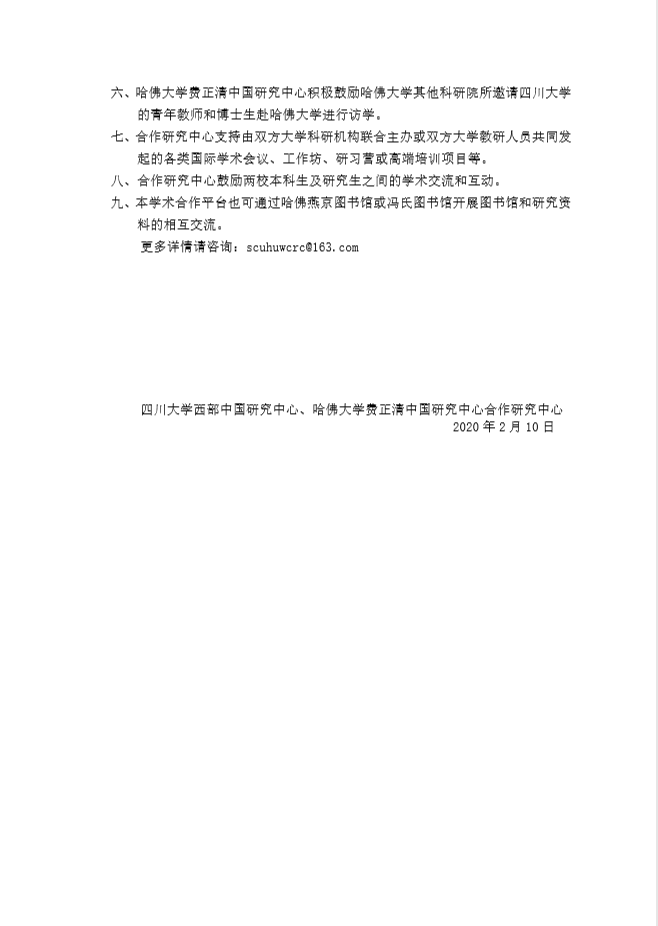 四川大学西部中国研究中心哈佛大学费正清中国研究中心合作中心公告